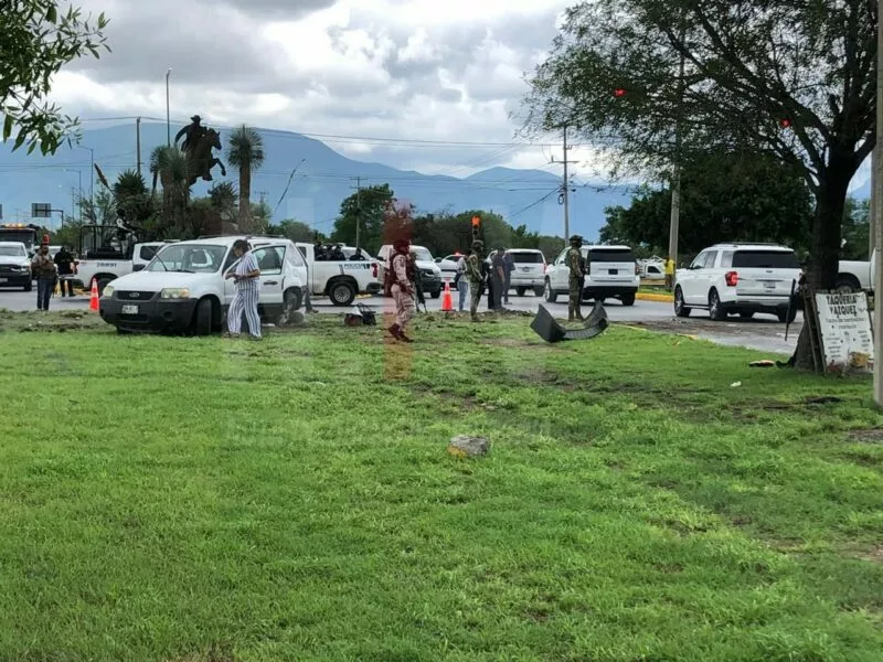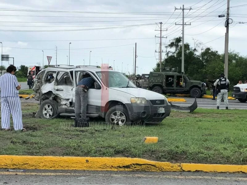Ciudad Victoria, Tamaulipas – Un fuerte accidente se registró en el entronque del libramiento Naciones Unidas con la carretera a Soto la Marina, a la altura del emblemático monumento “El Cuerudo”, donde una camioneta con RINO de la Secretaría de la Defensa Nacional (SEDENA) se vio involucrada.