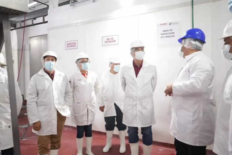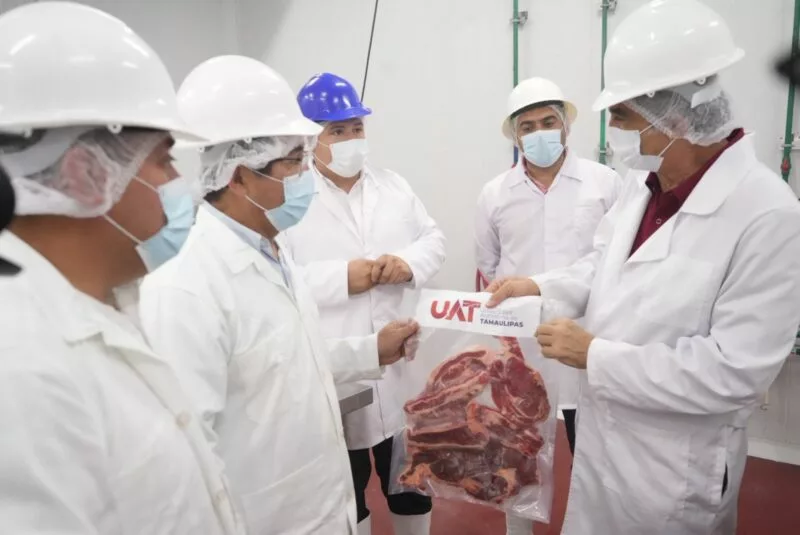 Acompañando del rector de la UAT, Dámaso Anaya Alvarado, el gobernador hizo un recorrido por las instalaciones del Rastro de la FMVZ que ha sido equipado con una moderna sala de cortes y la cámara de empaques, así como las adecuaciones al andén.