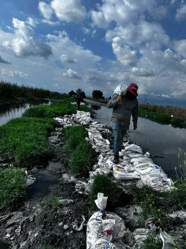 El compromiso del Gobierno municipal con las familias afectadas es claro, por ello se realizó la limpieza del canal La Constitución Totoltepec y se colocaron mil 300 costaleras, el cárcamo La Constitución y San Blas operan las 24 y 12 horas del día respectivamente, en el tramo del río Verdiguel aledaño a San Blas se colocaron 200 costaleras.