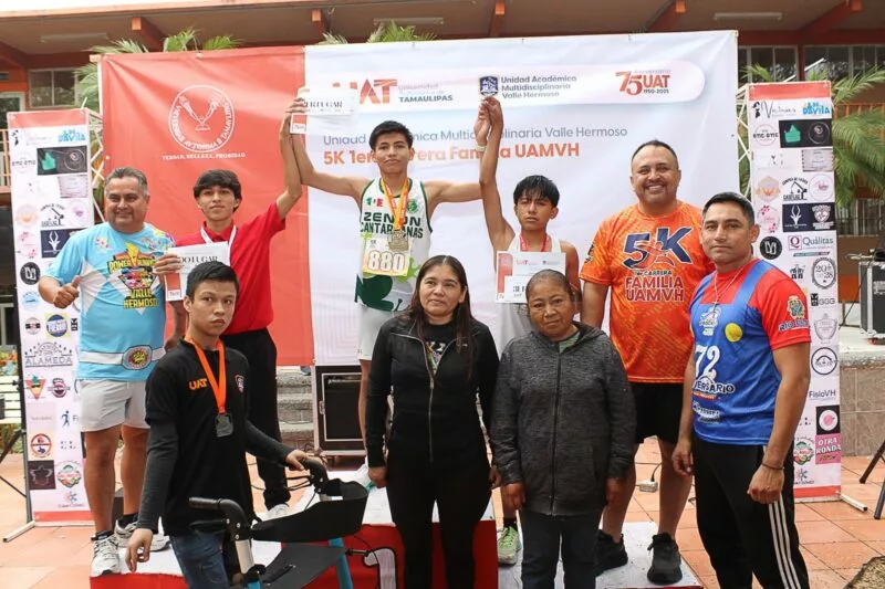 Valle Hermoso, Tam.; 10 de noviembre de 2025.- La Universidad Autónoma de Tamaulipas (UAT), realizó con éxito la “Primera Gran Carrera Familia UAMVH 5 K”, que reunió a más de 900 participantes.