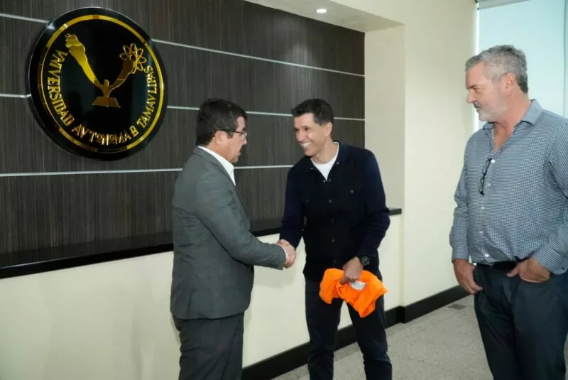 Acompañado del presidente del Club Correcaminos Armando Arce Serna, el rector Dámaso Anaya, dió la bienvenida a Gustavo Díaz como nuevo miembro del equipo y de la familia UAT.