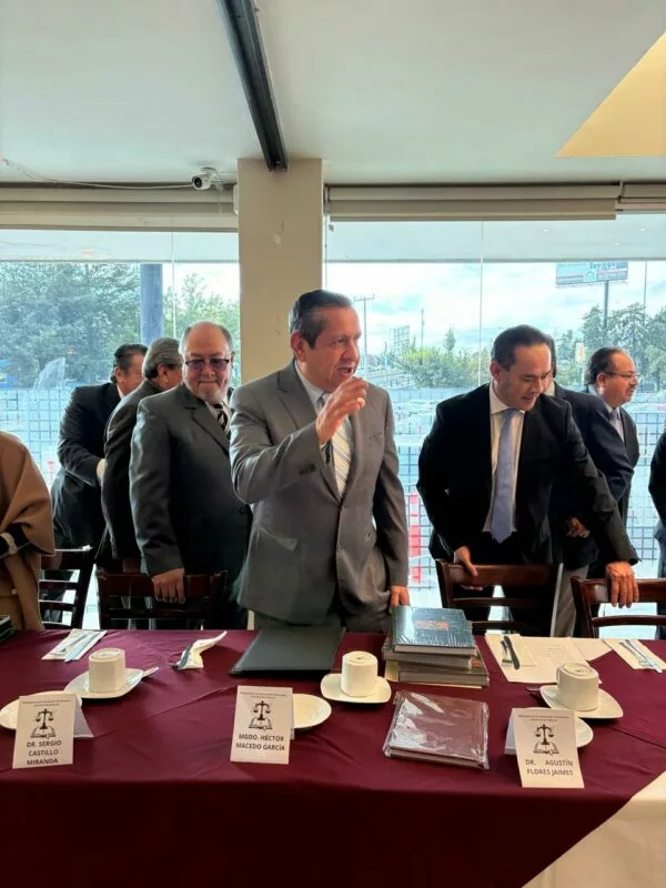 Toluca, Estado de México; 15 de diciembre de 2025 .- Con el propósito de consolidar la vinculación institucional y elevar los estándares del ejercicio profesional del gremio jurídico, integrantes de la Barra de Abogados del Estado de México sostuvo un encuentro con el magistrado presidente del Poder Judicial del Estado de México (PJEM), Héctor Macedo García, como parte de una estrategia de colaboración permanente entre las autoridades judiciales y las organizaciones de abogados.
