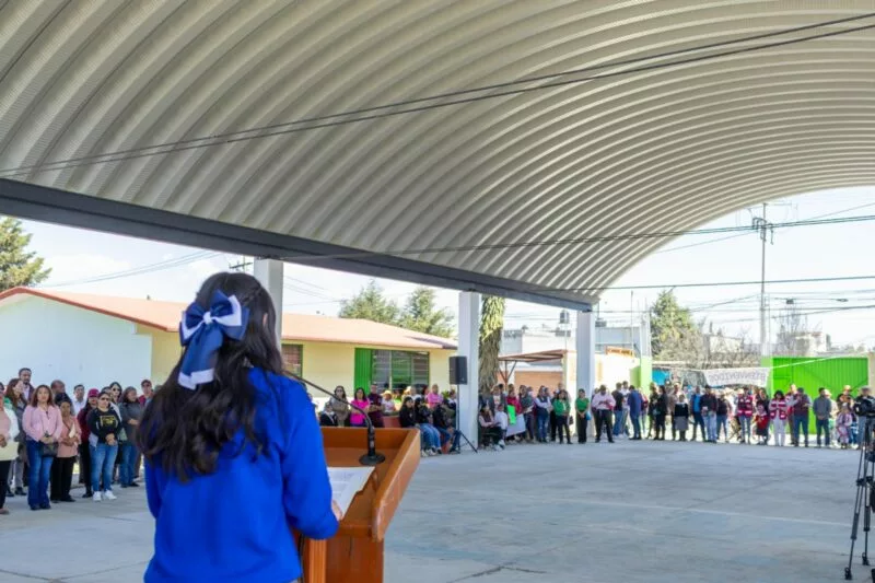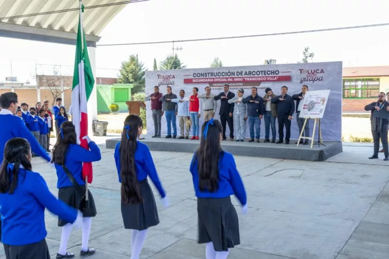 Toluca, Estado de México, 29 de enero de 2026.- El Presidente Municipal, Ricardo Moreno, continúa cumpliendo sus compromisos con la población y entrega nuevo arcotecho en la Escuela Secundaria Oficial No. 0800 Francisco Villa de Jicaltepec Cuexcontitlán, que la transforma en un espacio digno, seguro y multifuncional para 117 estudiantes, que fortalecerán su formación académica, deportiva, cultural y comunitaria.