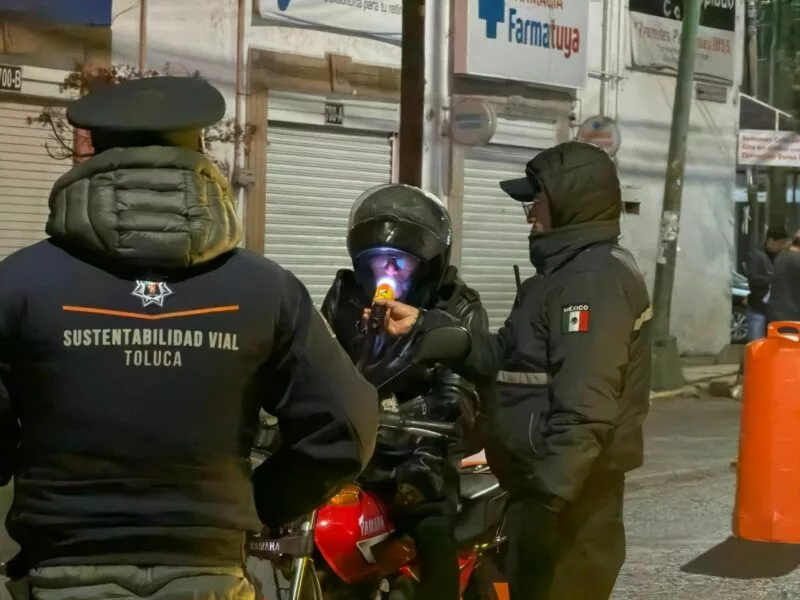 Toluca, Estado de México, 2 de febrero de 2026.- Agentes viales de la Dirección General de Seguridad y Protección de Toluca detectaron a 34 conductores en estado de ebriedad tras aplicar 75 pruebas de alcoholemia el fin de semana, como parte del operativo “Conduce sin Alcohol”.