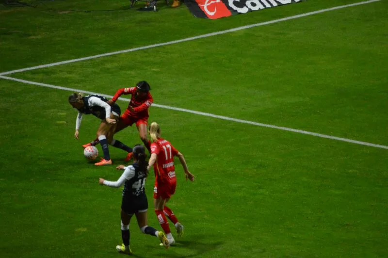 Las Diablas lucieron bien en el arranque, con intensidad, ganas e iniciativa, y con debut de Sofia Jakobsson. La sueca dio muestras de su velocidad y buena técnica, generando opciones al frente tanto en acciones individuales como en conexión con Eugenie Le Sommer.