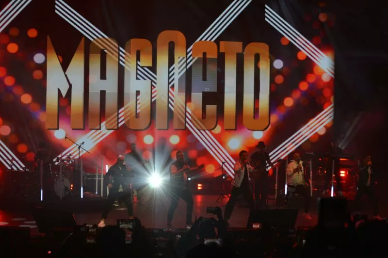 Desde los primeros acordes, Magneto encendió el recinto con temas que marcaron a toda una generación. Canciones como “Vuela, vuela”, “Para siempre”, “A la puerta del colegio”, “Cuarenta grados” y el cover “Voy desvelado” —tema popularizado también por Bobby Pulido— fueron coreadas de principio a fin por un público entregado, que no dejó de cantar y bailar en cada interpretación.