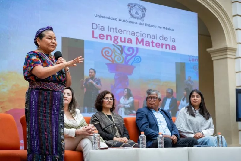 Toluca, Méx. – 17 de febrero de 2026. En el marco del Día Internacional de la Lengua Materna, la lideresa indígena maya quiché, defensora de los derechos humanos y Premio Nobel de la Paz 1992, Rigoberta Menchú Tum, dictó en la Universidad Autónoma del Estado de México (UAEMéx), la conferencia magistral “Diálogo de saberes y lenguas originarias”.