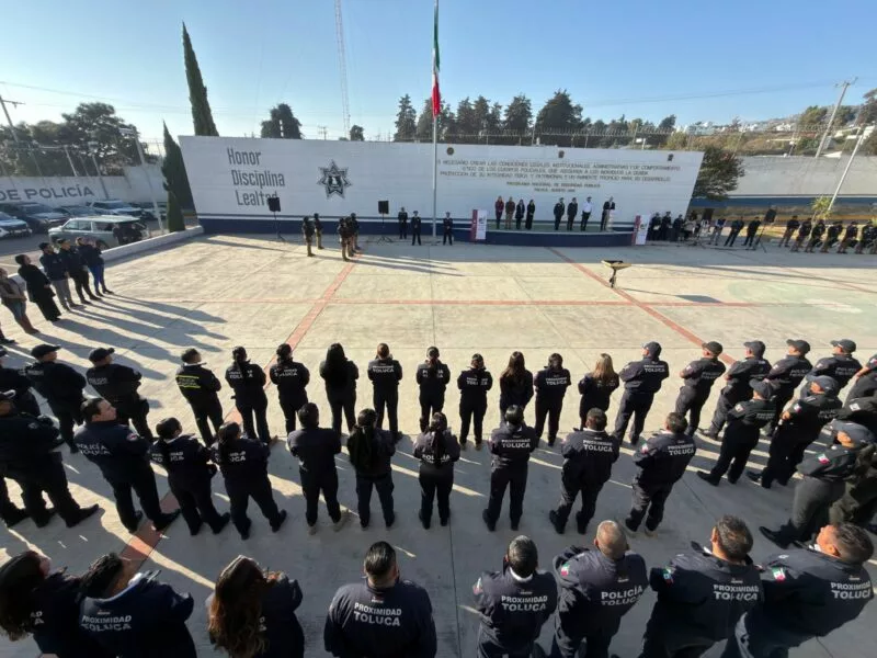 Toluca, Estado de México; La Academia de Policía Municipal de Toluca fue sede de la solemne ceremonia de Incineración de Bandera y Abanderamiento, acto que marca la conclusión del ciclo de servicio de la enseña patria y la entrega del nuevo lábaro que será resguardado por la corporación.