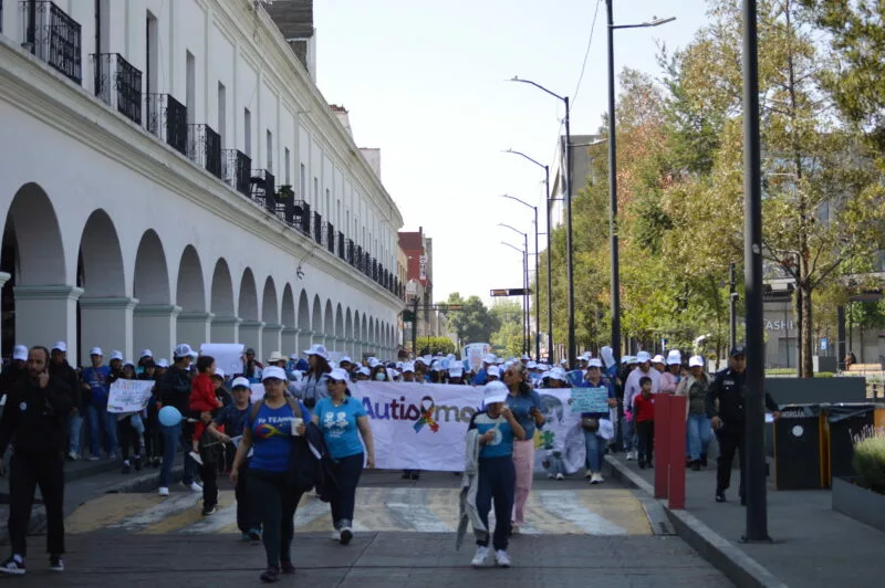 Toluca 12 de abril de 2026 .- Con consignas de inclusión y exigencias concretas de política pública, más de dos mil personas — entre activistas, madres, padres de familia y menores con autismo — se movilizaron este domingo en la capital mexiquense para demandar una atención integral a la neurodivergencia. La marcha partió del monumento al Águila y culminó con un mitin frente a Palacio de Gobierno, donde hicieron público un pliego petitorio dirigido a la gobernadora Delfina Gómez Álvarez.