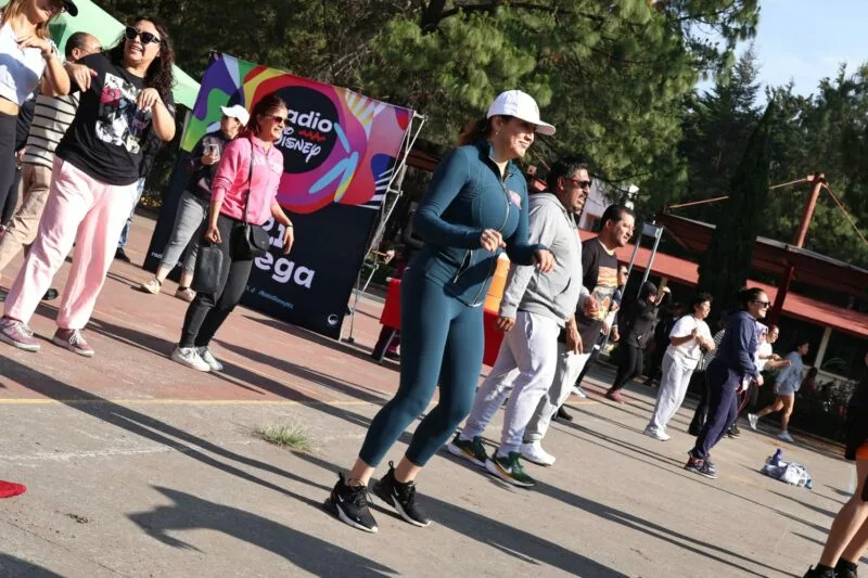 Toluca, Estado de México, 18 de abril de 2026.- Más de 250 personas disfrutaron de la Mega Clase de Zumba organizada por Radio Disney en conjunto con la Presidenta del Sistema Municipal DIF, Rocío Pegueros, como parte del impulso al programa Toluca se pone en forma.